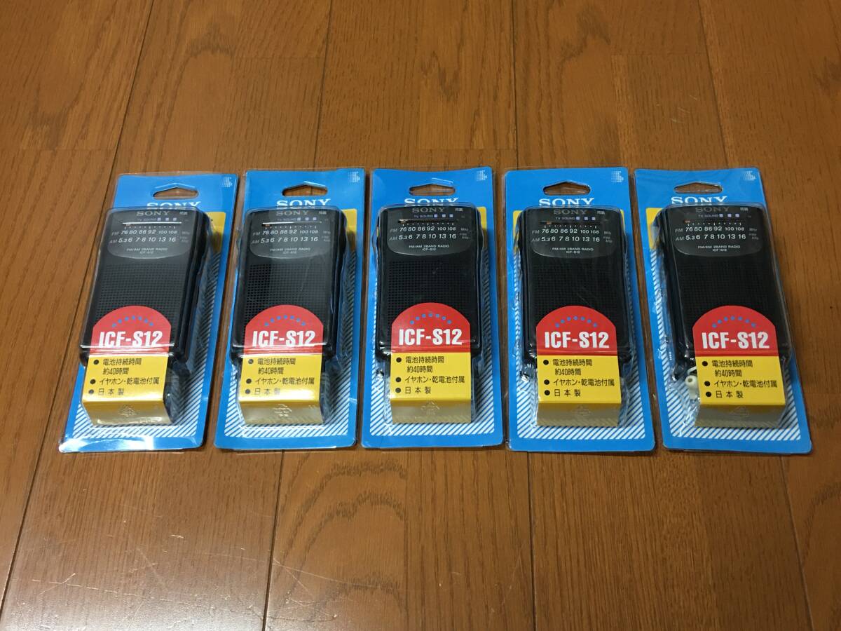 - A23172)Sony ICF-S12 日本製 FM/AMコンパクトラジオ 未使用品5点セット