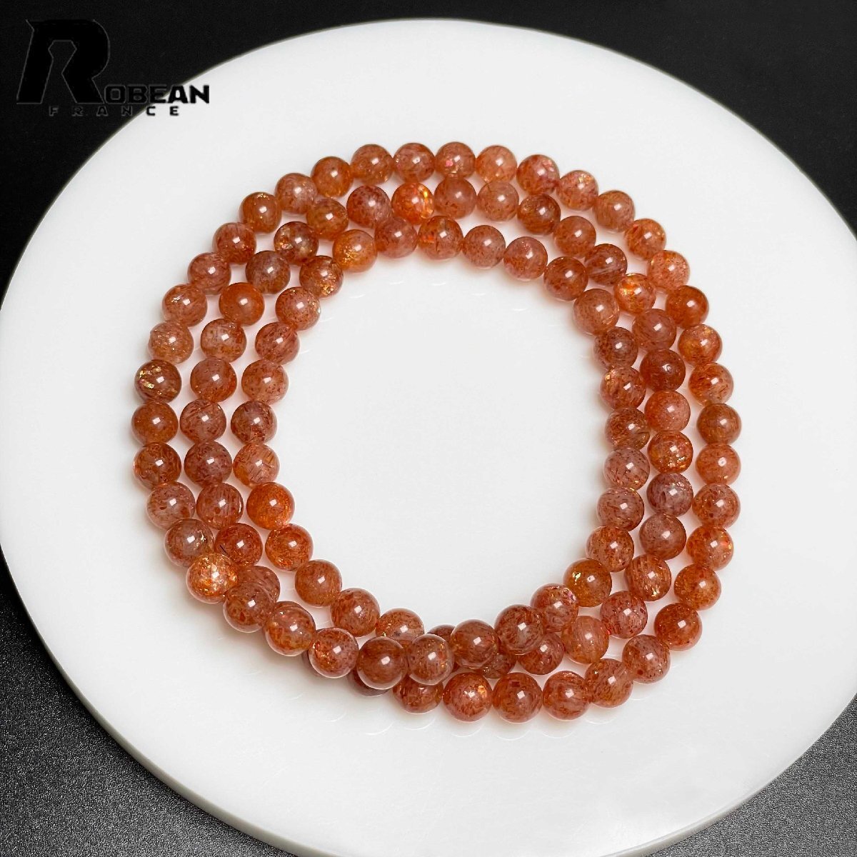 > 高級 EU製 定価7万円★ROBEAN・サンストーン日長石★3本巻きブレス パワーストーン アクセサリー 太陽石 金運 勝利 5.6-5.9mm L0315236