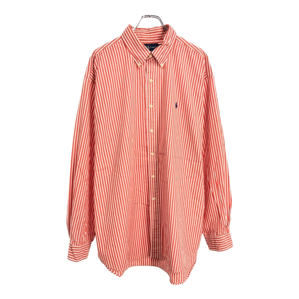 - RALPH LAUREN ラルフローレン ボタンダウン 長袖シャツ 大きいサイズ ストライプ オレンジ(メンズ XXL)中古 古着 U4924 1円スタート