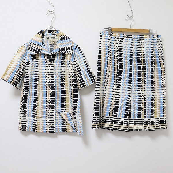 ◎商品名(タイトル):ランバン LANVIN ヴィンテージ セットアップ スカートスーツ シャツ スカート 総柄 [x958781]◎ブランド名:ランバン (LANVIN)◎アイテム名:セットアップ スカートスーツ◎サイズ:-◎性別:レディース◎カラー:マルチ◎素材:画像をご参照ください◎実寸サイズ:(トップス)肩幅約 37cm・袖丈約 25cm・着丈約 60cm・胸囲約 50cm×2 (スカート)ウェスト約 39cm×2・スカート丈約 61cm◎商品コメント:★当店の商品はすべてリユースアイテムとなります。特質上、些細なダメージは記載しておりませんので着用に問題のない使用感、着古した雰囲気などはご了承下さいませ。◎コンディションレベル:やや傷や汚れあり◎コンディション備考:スカートの前裾と中央付近に薄い汚れがございます(画像8,9参照)キーワード/アクイール/古着/used/ビンテージ/ヴィンテージ/昭和/レトロ/ロングスカート/ロング