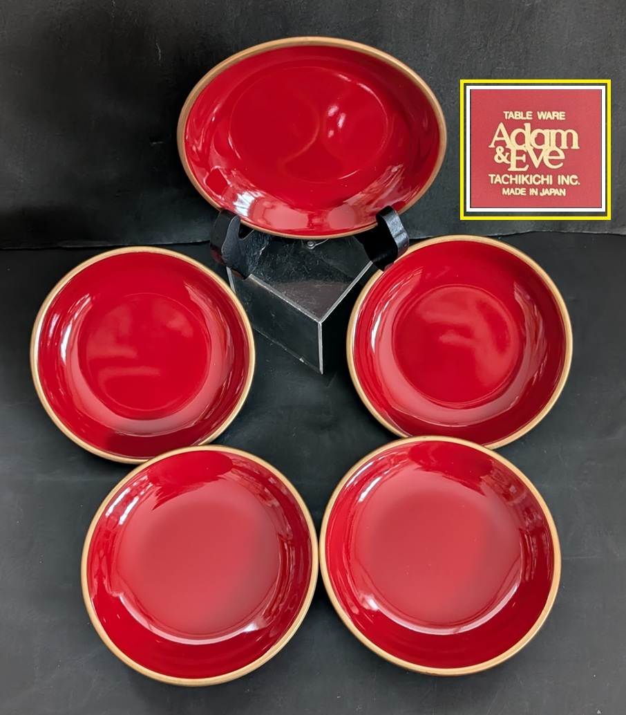 > たち吉 Adam&Eve アダム&イブ 漆器 朱漆&金彩 銘々皿 取り皿 小皿 5枚セット *お正月 おせち取り皿
