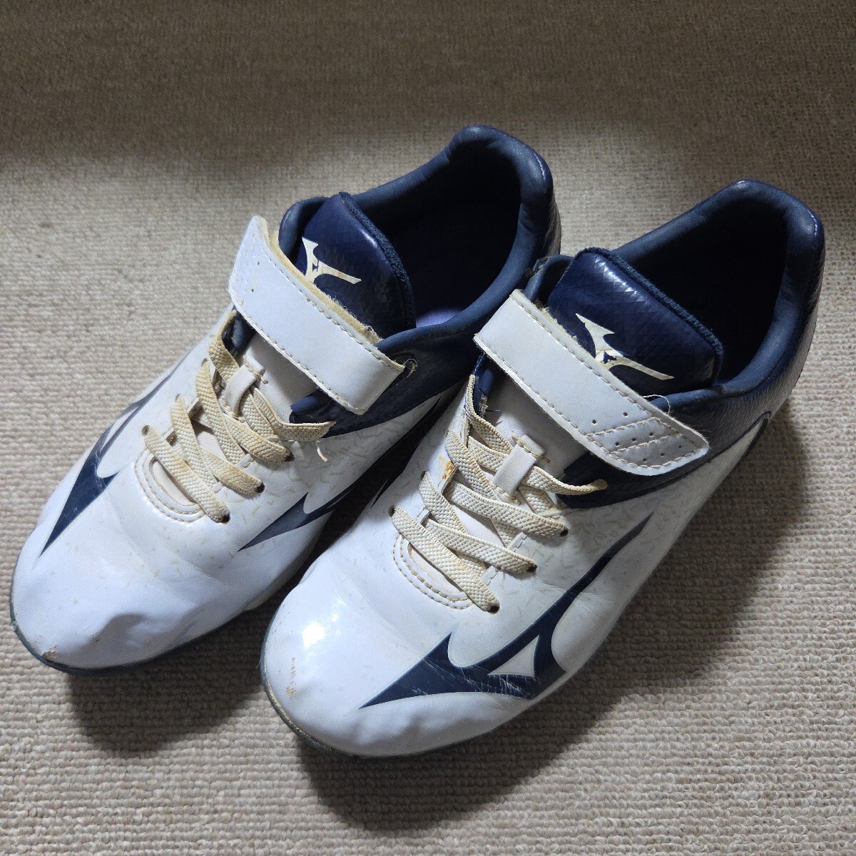 > ミズノ 野球 ジュニア 少年用 スパイク ホワイト×ネイビー 22.5cm 中古品