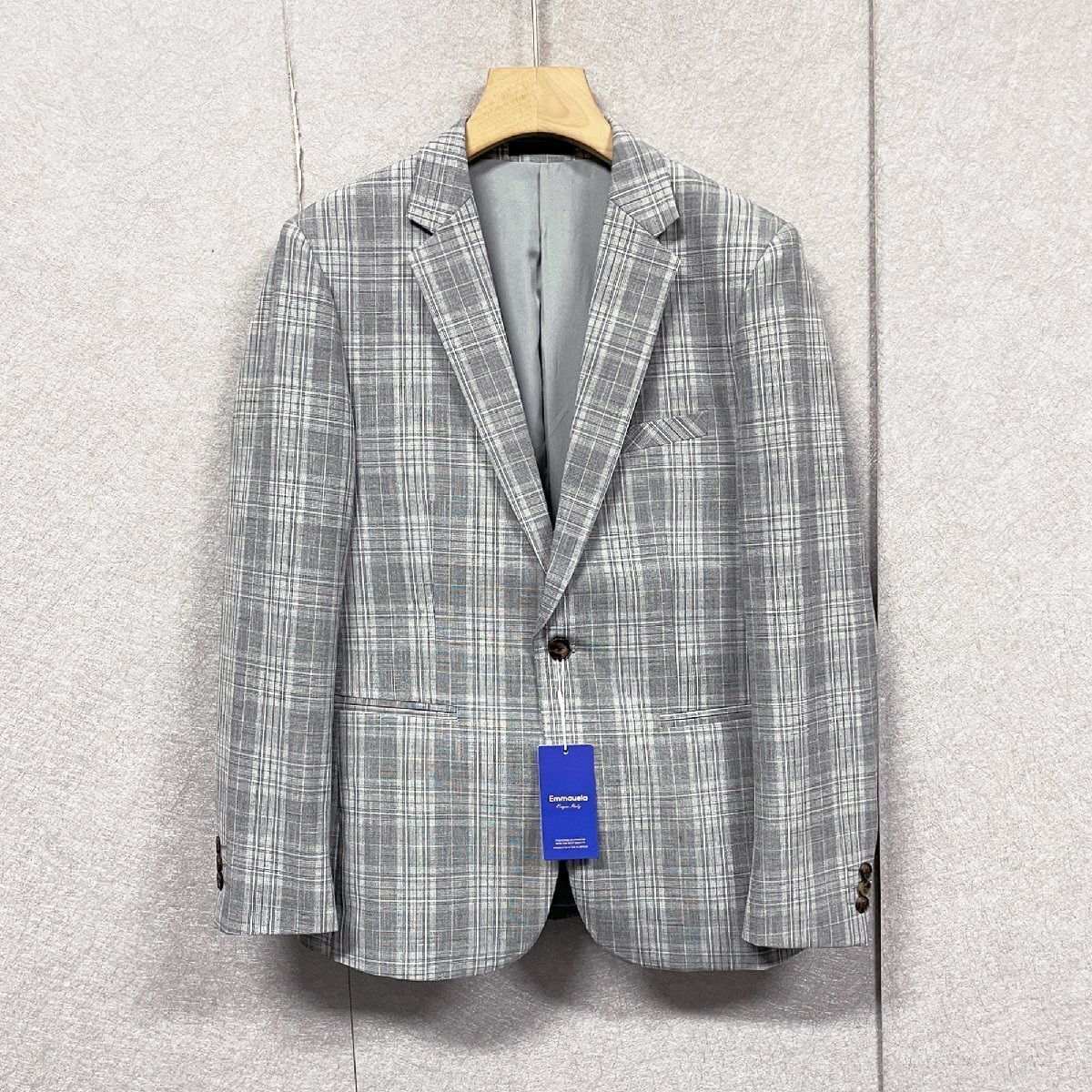 > 上品・テーラードジャケット 定価6万◆Emmauela・イタリア・ミラノ発◆上質 綿混 快適 ソフト チェック柄 スーツ 紳士 フォーマル 2XL/52
