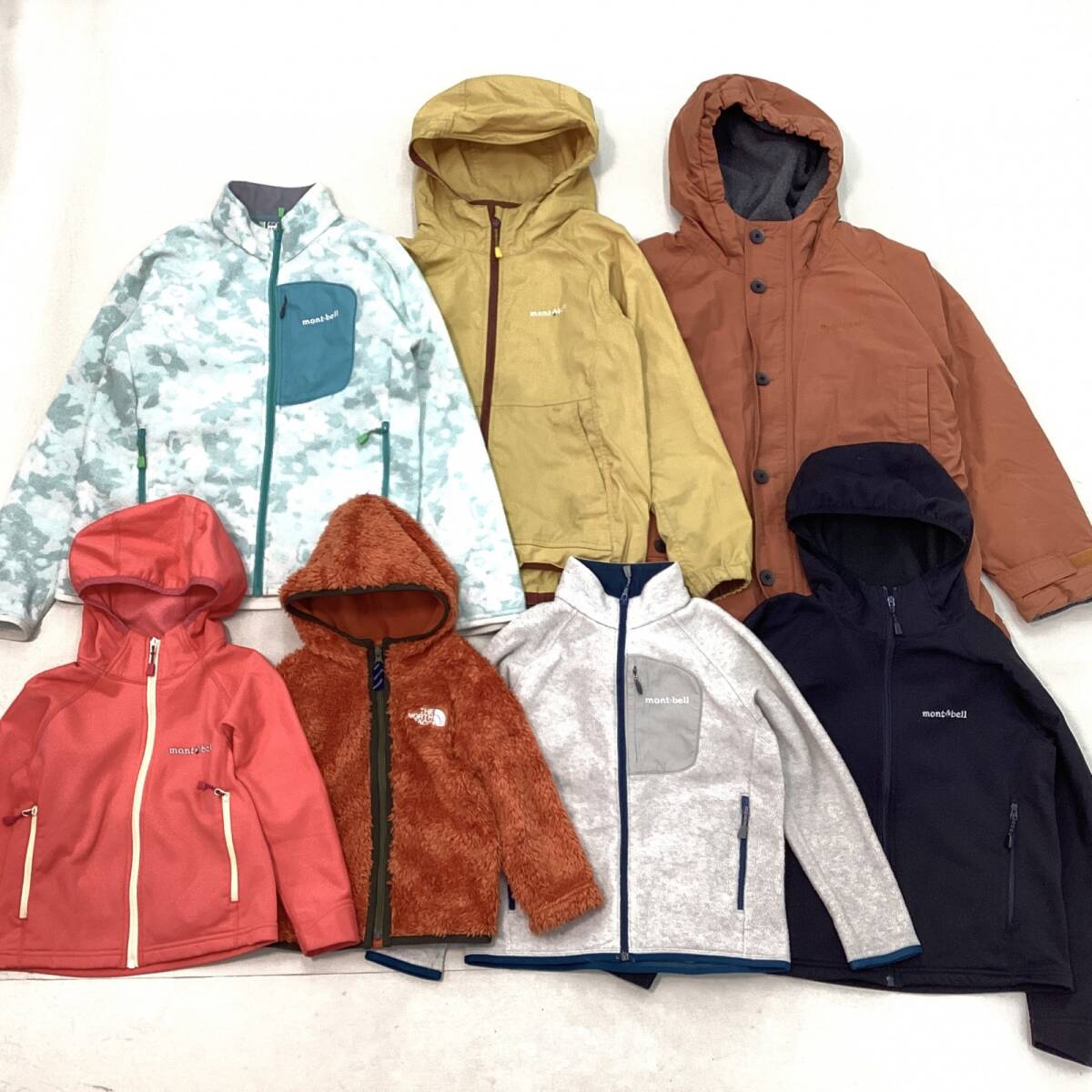 > ■mont-bell, THE NORTH FACE キッズ 子供用 アウトドアジャケット 7点 まとめ商品 サイズMIX 男の子 女の子 フリース他 中古卸 2.14kg
