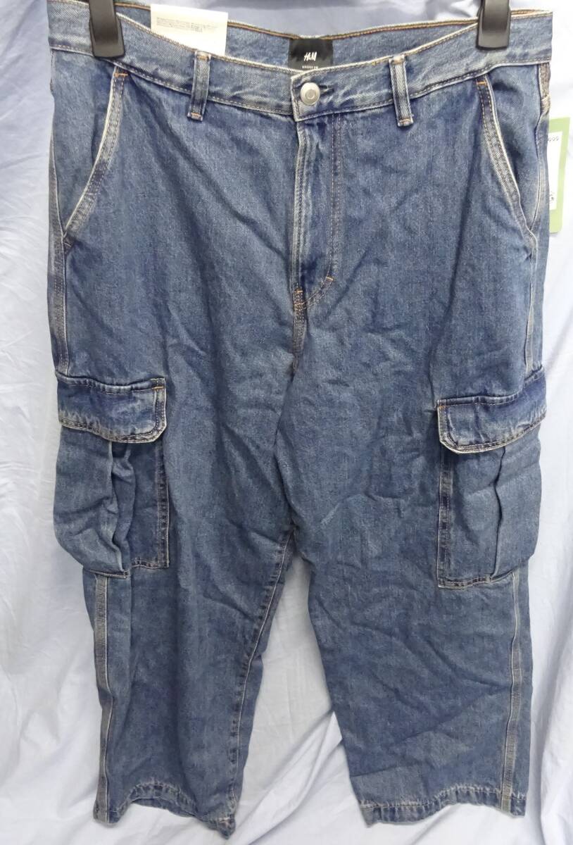 > (EE-17)H&M エイチアンドエム バギーフィット カーゴパンツ カジュアル デニム パンツ メンズ レディース ブルー 中古