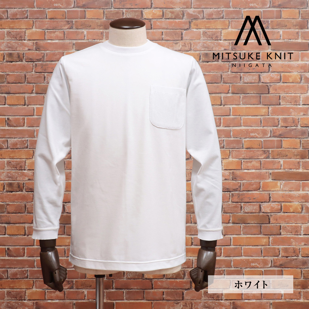 - 1円/秋冬/MITSUKE KNIT/3(L)サイズ/長袖Tシャツ 日本製 ポケット 吸水速乾 カットソー ミツケニット 新品/白/ホワイト/ma262/