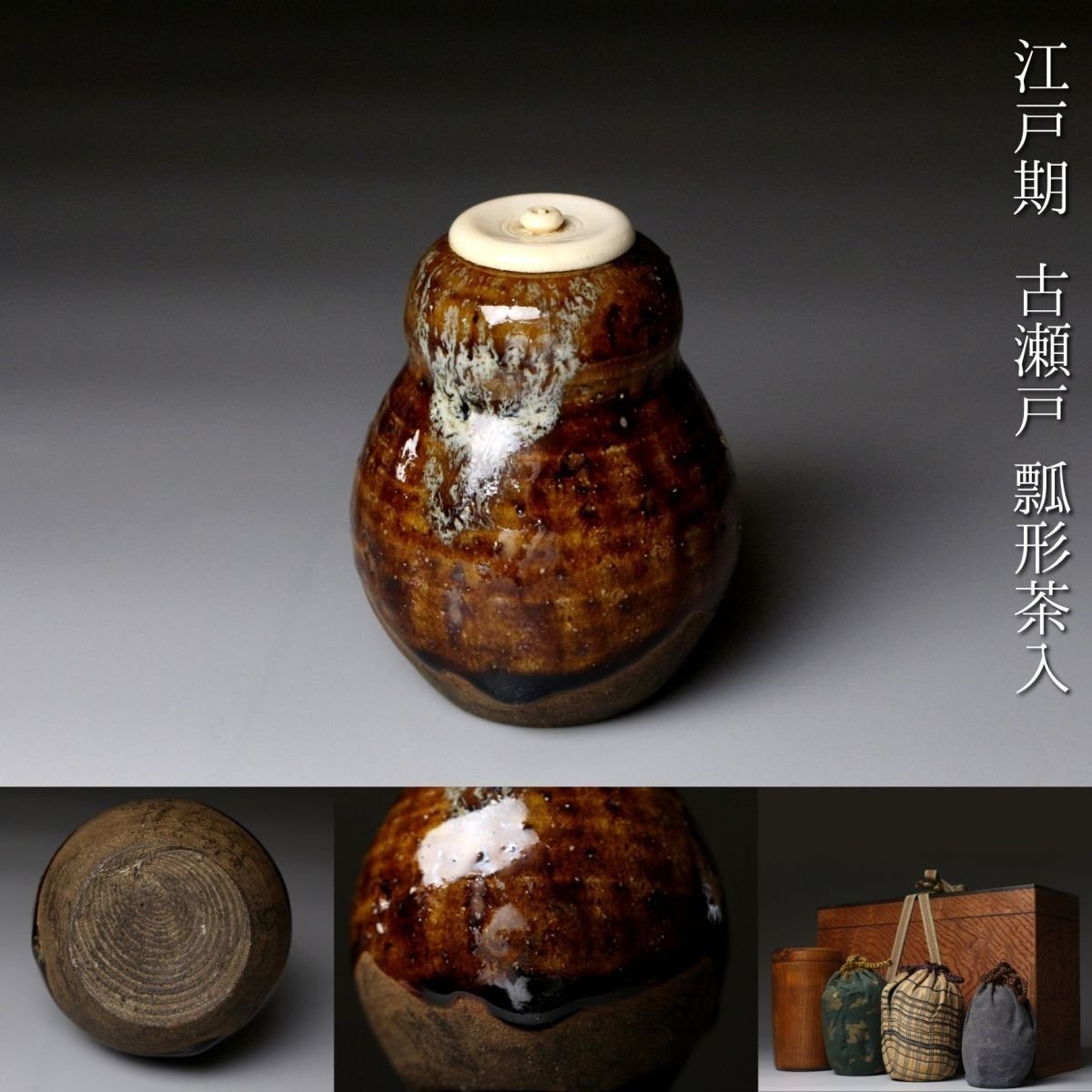 > 【LIG】江戸期 古瀬戸 瓢形茶入 仕覆 箱付 見事な仕立て 茶道具 茶器 コレクター収蔵 [.EI]25.11