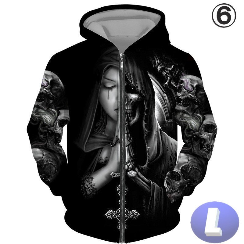 - フード付き ドクロパーカー ジップアップ カラー6 L トレーナー アウター 防寒 n717