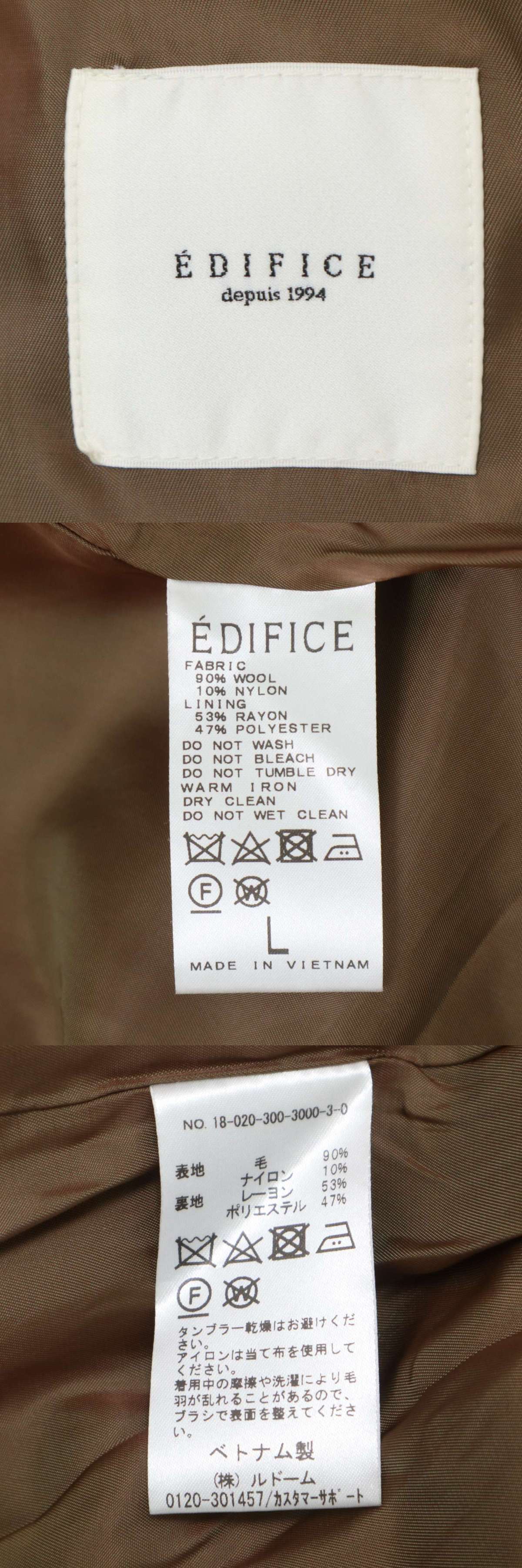 【美品】EDIFICE エディフィス 秋冬★ ウール スタンドカラー コート Sz.L メンズ拍卖