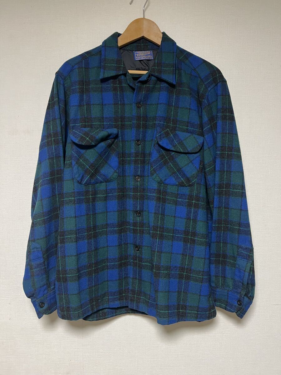 - PENDLETON ペンドルトン ボードシャツ USA製 60s L ウール ビンテージ チェック 好配色 ブルー グリーン