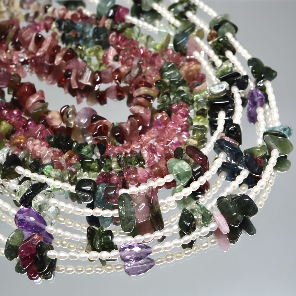 - K18WG入!!■本真珠×天然トルマリンネックレス2点/トルマリンネックレス2点/ブレスレット1点おまとめ■D 約134.3g tourmaline DB3/EA7 U960