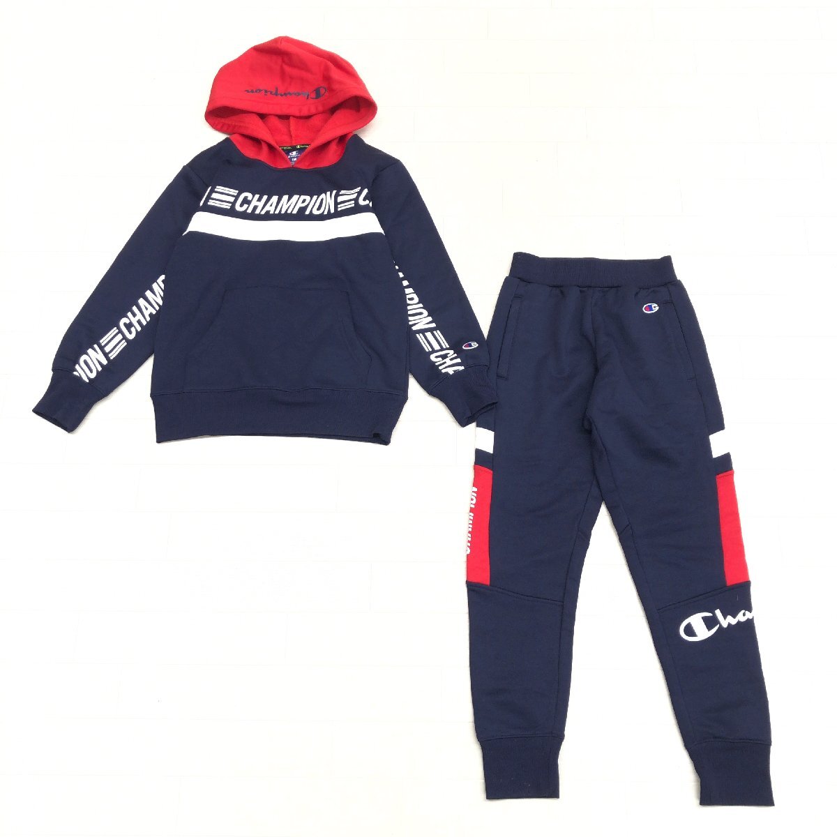 > ●極美品 Champion チャンピオン 裏起毛 スウェット パーカー パンツ 上下セットアップ 150 ネイビー フーディ ジャージ キッズ 男の子