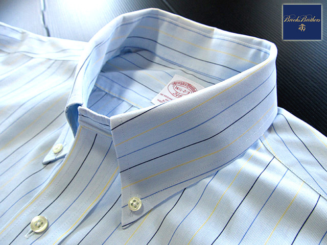 - ★美品 ブルックスブラザーズ BROOKS BROTHERS ボタンダウンシャツ 長袖 Lサイズ 希少品 マルチストライプ ブルー×ブラック×ホワイト