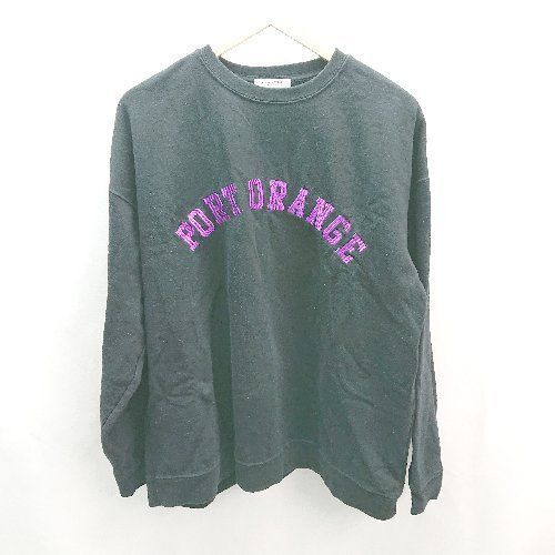 - ◇ FREAK'S STORE ロゴ オーバーサイズ 裏起毛 刺? 長袖 トレーナー サイズF ブラック/パープル レディース E