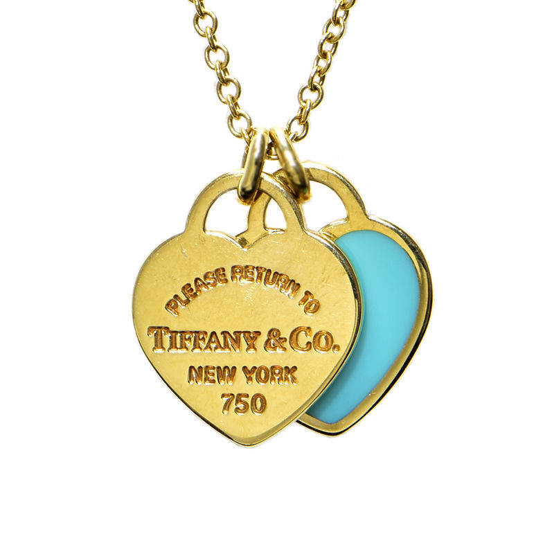 > ティファニー リターントゥティファニー ミニダブルハートタグペンダント 67800966 K18YG 水色 イエローゴールド 地金約3.6g 中古 送料無料