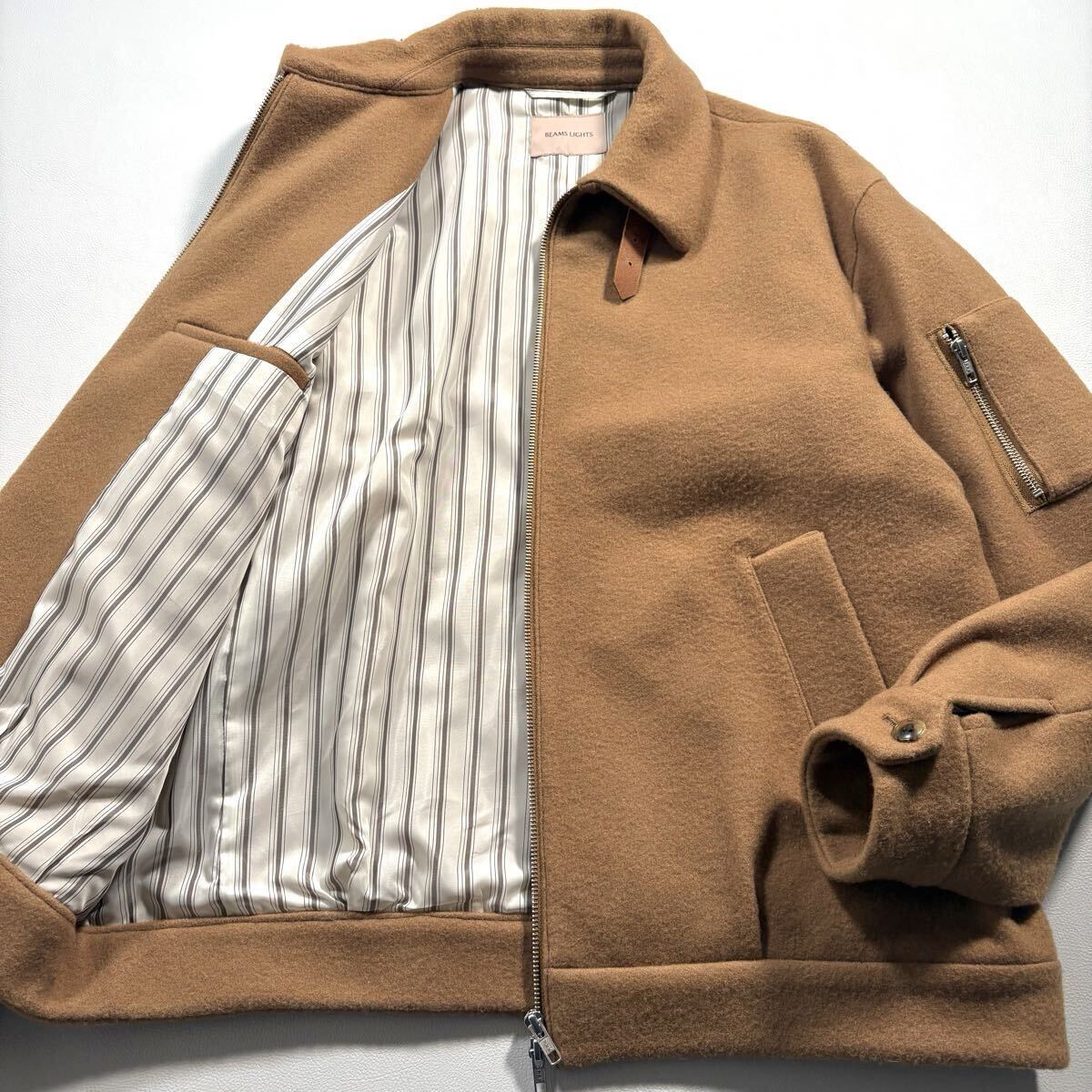 - 極美品 L 極暖 キャメルカラー ビームスライツBEAMS LIGHTS ウール ジップアップ ブルゾン マリンジャケット 裏地ストライプ メンズ 秋冬