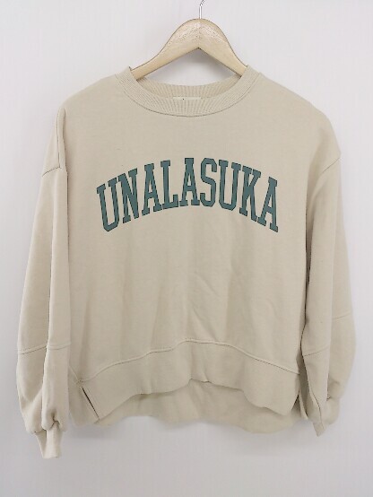 > ◇ earth music&ecology アース ミュージック&エコロジー プリント 長袖 トレーナー サイズF ベージュ レディース E
