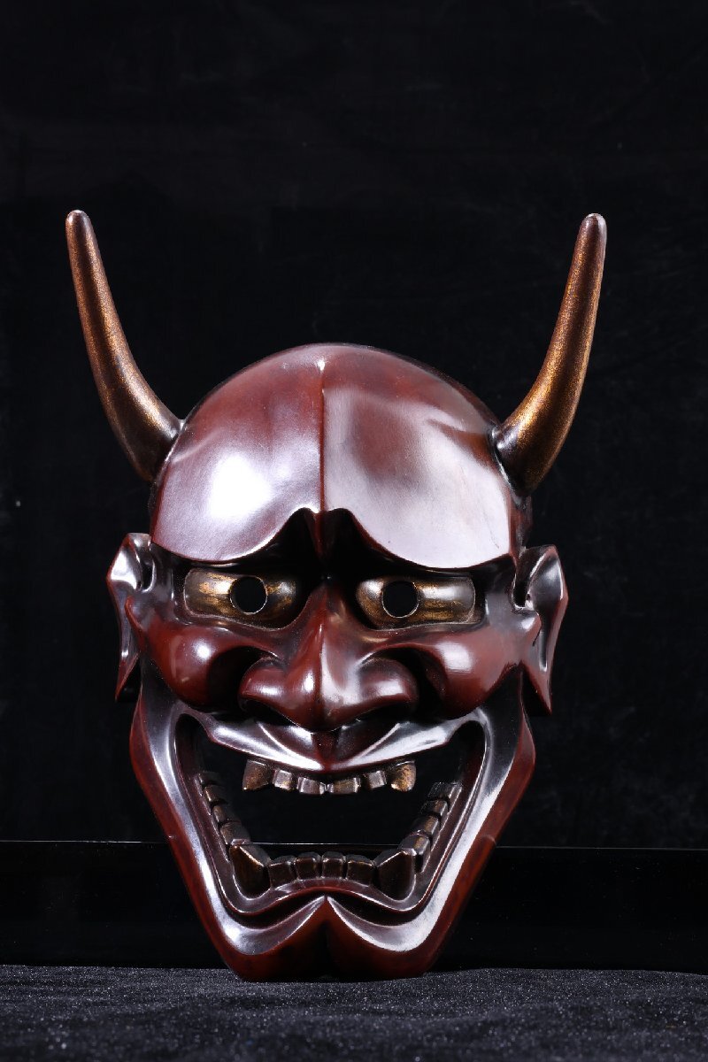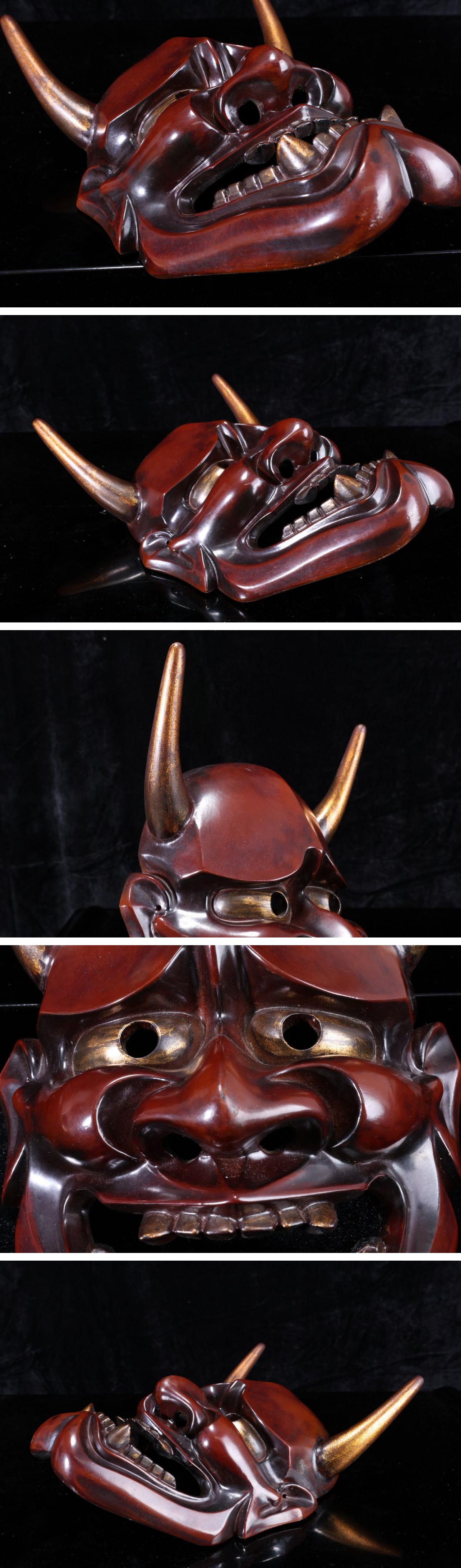 - 【珍品堂】1円から Q32-V12 双藝社 お面 能面 神楽面 飾り面 細密彫刻 般若 高8㎝ 歌舞伎 縁起物 魔除け 伝統工芸品 時代物 骨董品 古美術