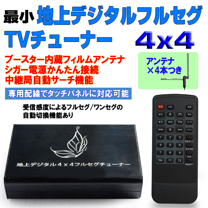 - 送料無料!!4×4車載用フルセグチューナー フルセグワンセグ 自動切換え 12V 24V フィルムアンテナ4枚 「Tu4」