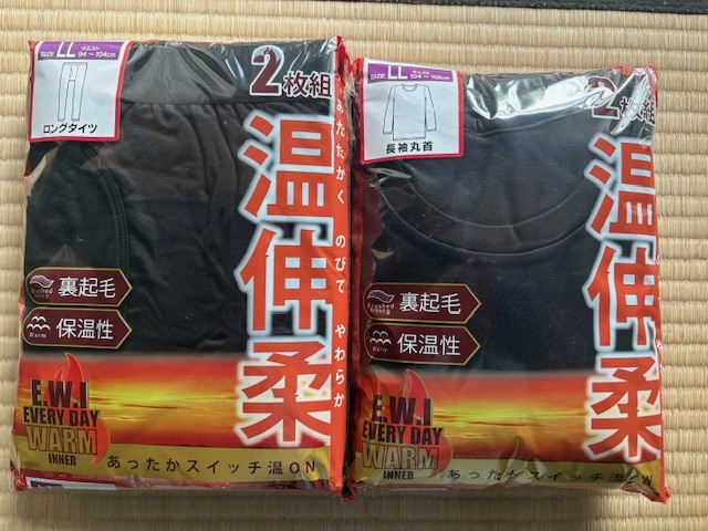 - 平松工業㈱ 黒色 温・伸・柔 裏起毛 サイズLL・XL 上下セット 長袖丸首×2 ロングタイツ×2 新品未使用