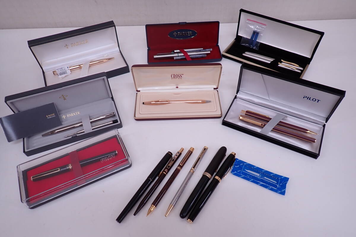 - 高級ブランド 万年筆 ボールペン シャーペン 15本セット PARKER PILOT CROSS Burberrys Roberto UNIC K14 585 IRIDIUM G11081T