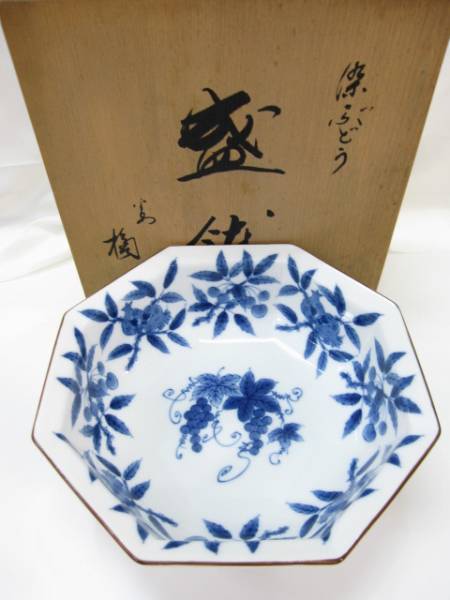 - 極美品■ 橘吉 たちきち 染ぶどう 盛鉢 極上品 管理1601 B-3