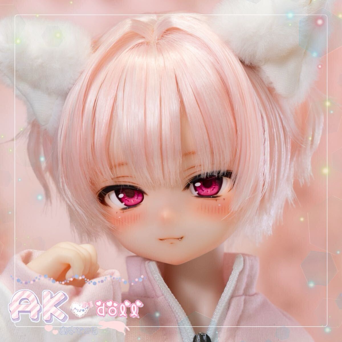 - 【AK*doll】DDH-01 カスタムヘッド+カスタムウィッグ+デカールアイ ソフビ盛り有り SWセミホワイト肌