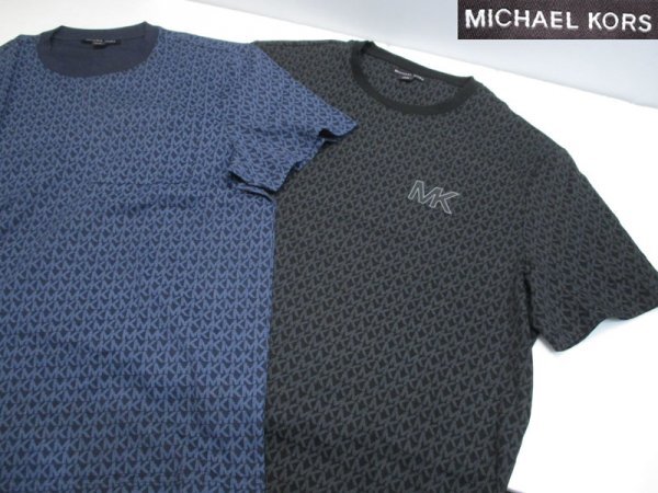 > Z2018 【美品】 MICHAEL KORS マイケルコース 総柄 MKロゴ Tシャツ L 2点 / ブラック ネイビー系 半袖 メンズ カットソー コットン100%