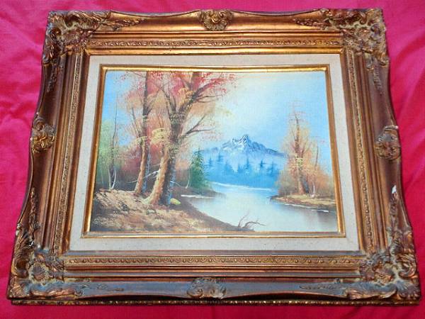 > エベレスト 油絵 油彩 雪 森 河 川 秋 冬 横60cm 縦50.5cm 奥行4.7cm 1,700g チョモランマ 30年以上昔の絵 送料無料 底値