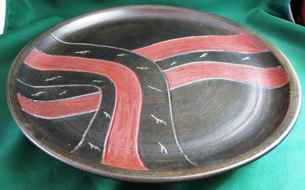 - 送料無料 流 赤茶 照作 大皿 食器 32cm