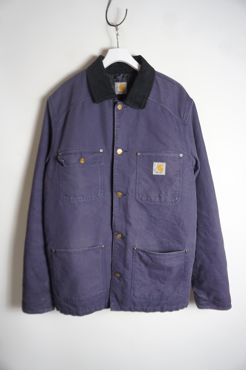 - 正規 00s Carhartt カーハート カバーオール スクエア コート 内キルティング チョアコート ミシガン ナス紺 紫 L 本物 923P★2