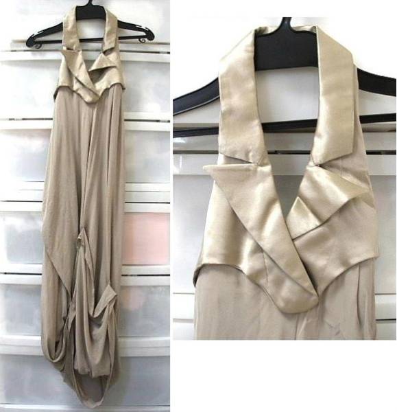 > 新品*定価90300*シルク100%*LE CIEL BLEU*変形 ホルター マキシ ワンピース ドレス F ベージュ