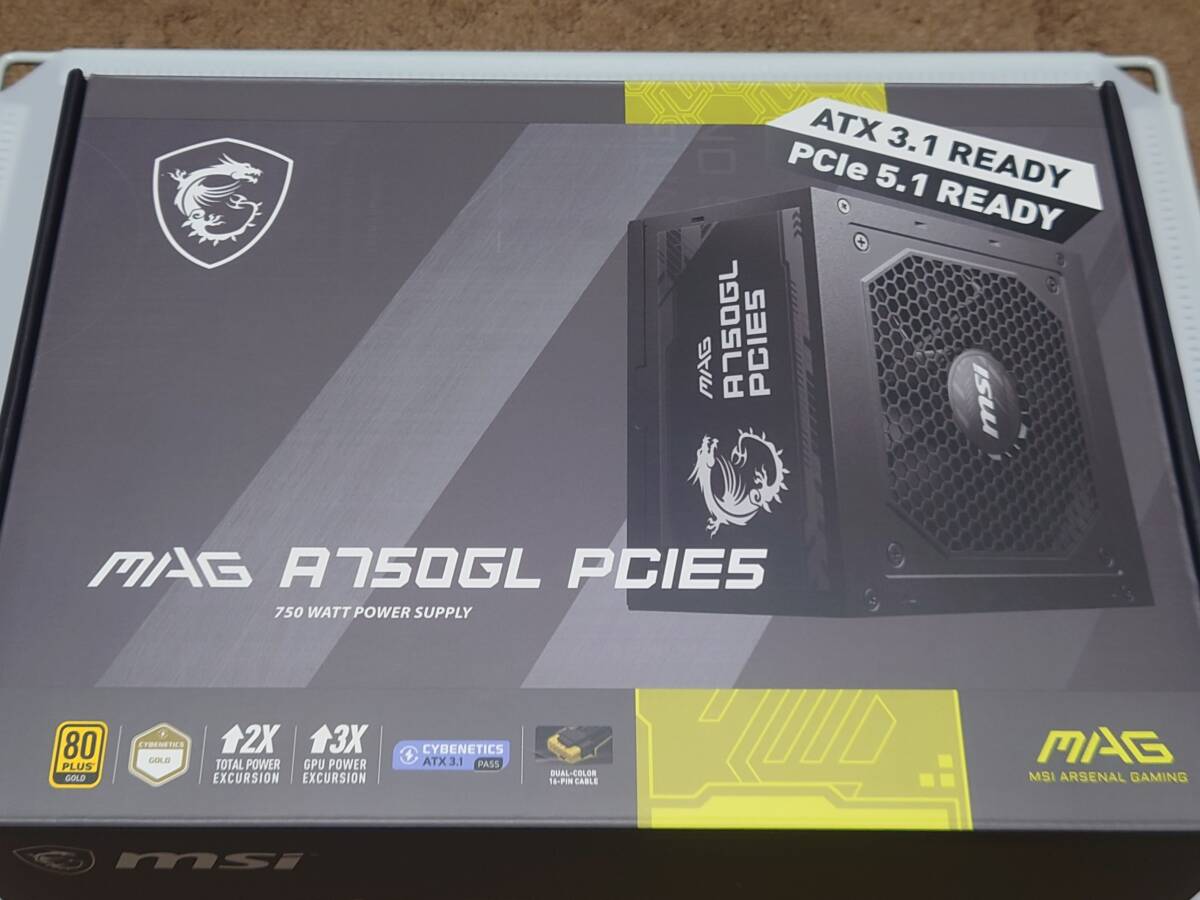 > MSI MAG A750GL PCIE5 PC電源ユニット 750W ATX3.1/PCIe 5.1対応 80PLUS GOLD認証