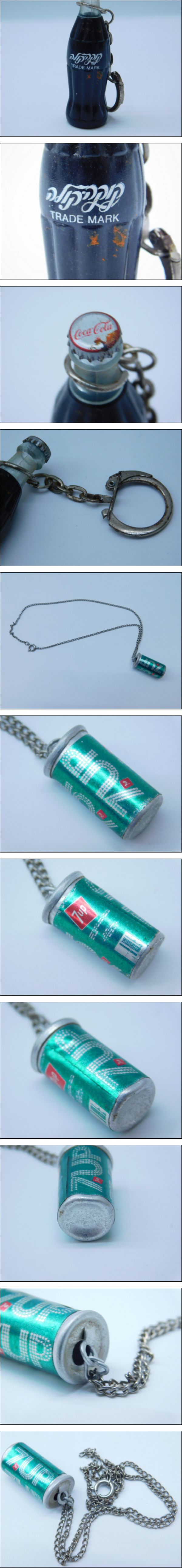 - ★小3146 昭和レトロ 非売品 コカ・コーラ ミニボトル 瓶 キーホルダー ペルシャ語 外国語 7up ソーダ缶 ネックレス ノベルティ 12603072
