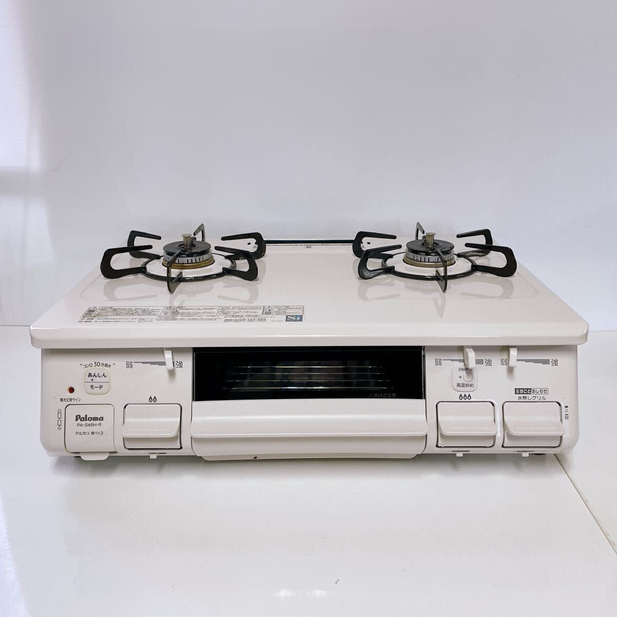 - 222【中古】ほぼ未使用!グリルは未使用!パロマ Paloma ガステーブル ガスコンロ LPガス用 PA-S46H-R ホワイト 排気口カバー無 現状品