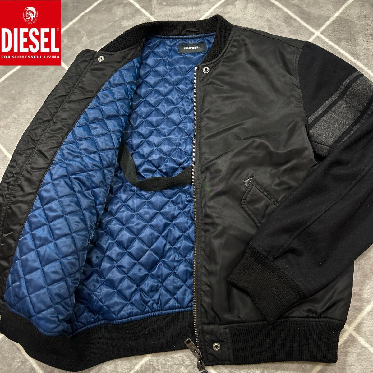 > 【極美品XL】最高傑作 ディーゼル DIESEL フライトジャケット 袖素材切替 中綿キルティング MA1 インナーロゴ ボタン刻印【抜群の存在感】