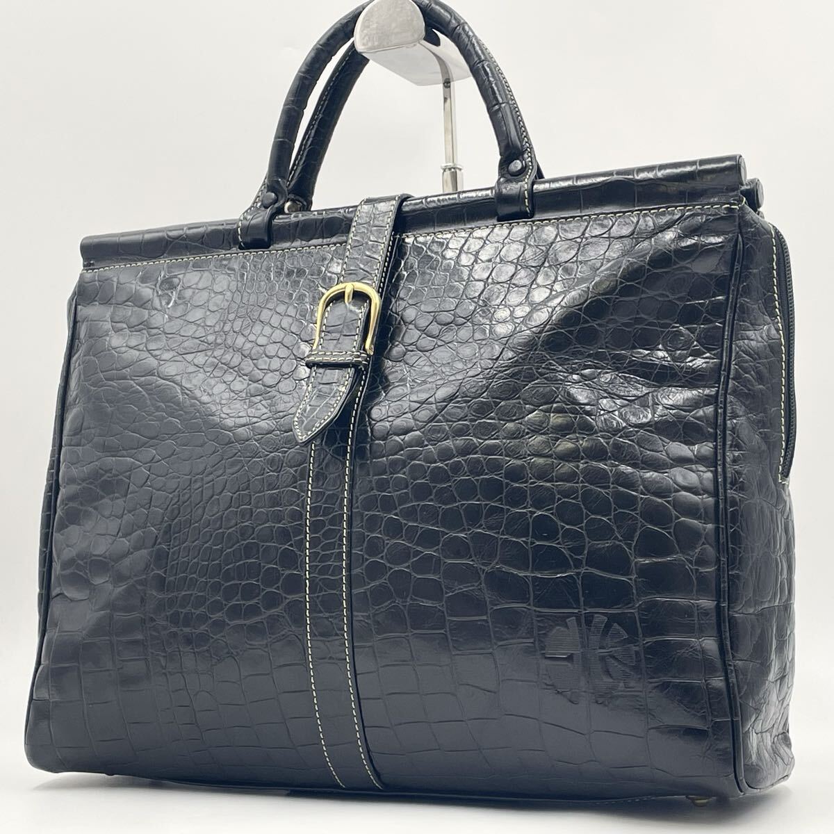 > 【極美品】LOEWE エンリケ ロエベ ナッペ クロコ型押しレザー ヴィンテージ ビジネスバッグ ブリーフケース メンズ 通勤 A4可 ブラック