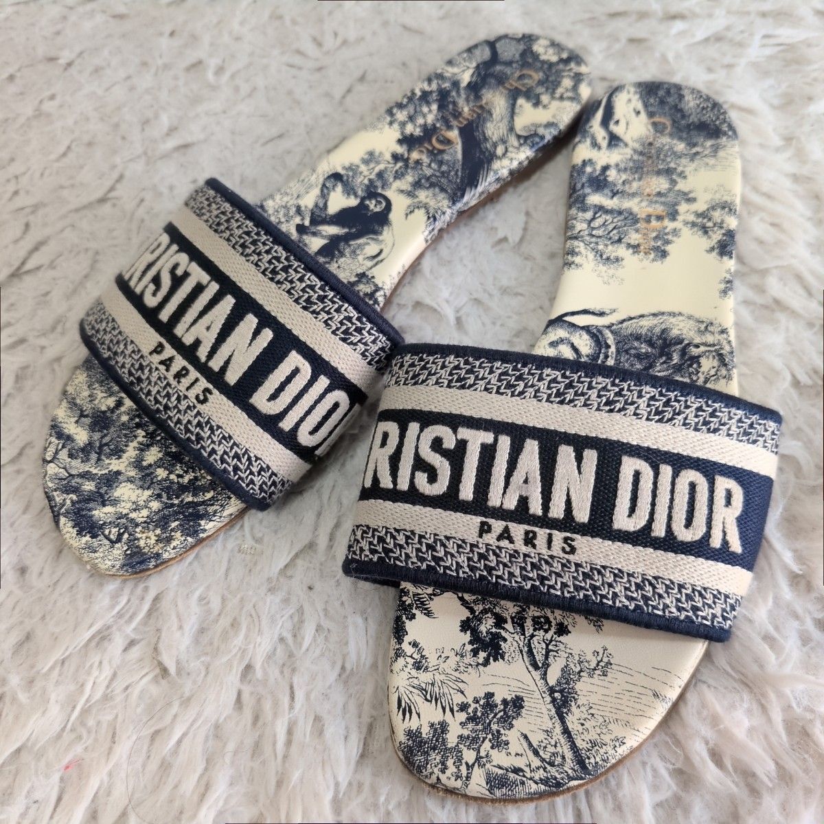 - 【人気!!】Christian Dior クリスチャンディオール DWAY ドウェイ トワルドジュイ スライドサンダル 39 エンブロイダリー Toile de Jouy