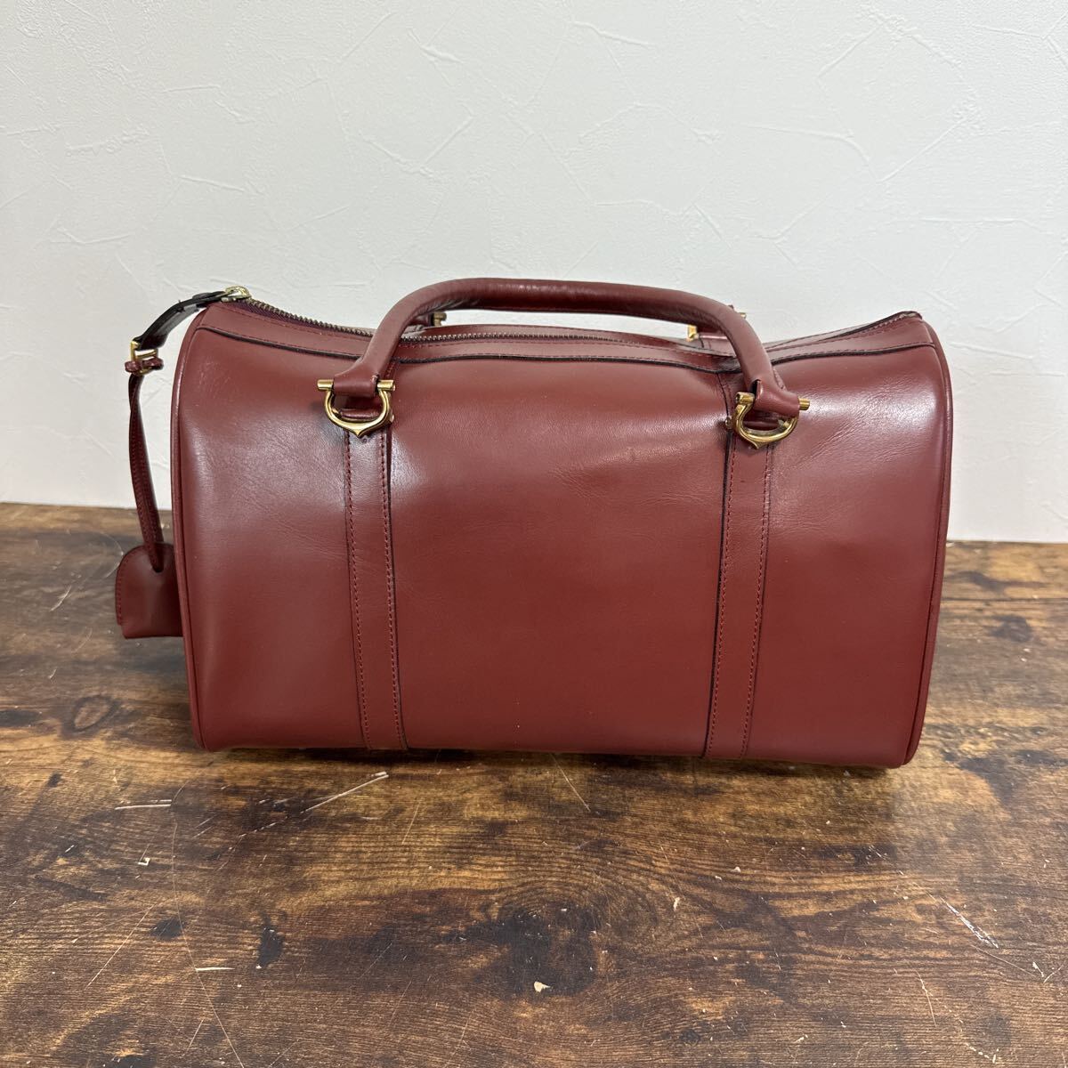 > 0316-11◆ カルティエ Cartier ヴィンテージ マストライン・ボストンバッグ ボルドー ハンドバッグ レザー