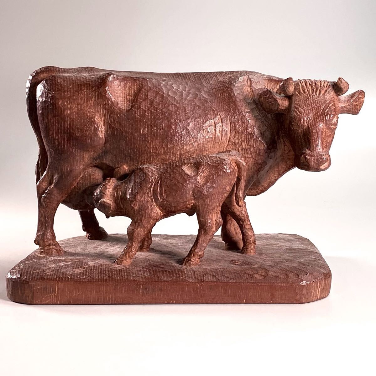 - 猫夢◆ 古美術品 在銘 木彫 牛置物 30.5cm 一刀彫 唐物 骨董 [R212.2]QW3