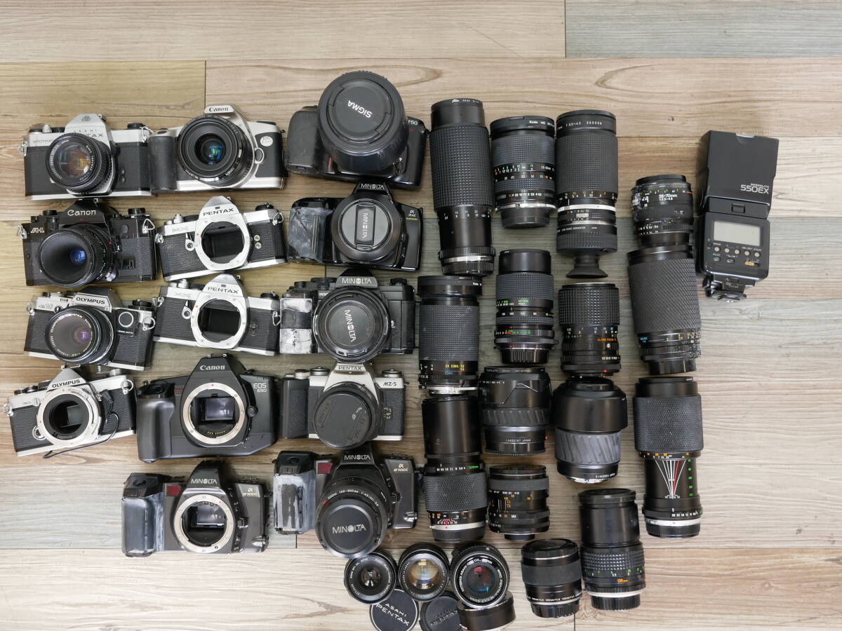 - ② 一眼レフフィルムカメラまとめ canon a-1 pentax spf 55mm f1.8 olympus om-2 canon eos nikkor ai-s ボディ レンズ