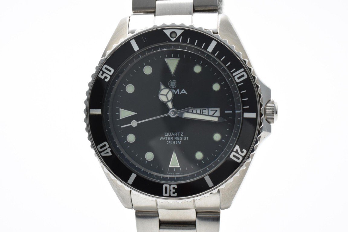 - CYMA シーマ 腕時計 メンズ クォーツ式 ラウンド シルバー ブラック文字盤 デイデイト 3針 ステンレススチール