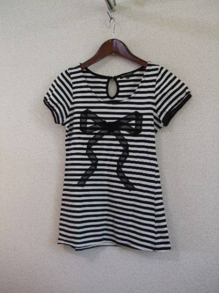 - MISCHMASCH白×黒ボーダー半袖カットソー(USED)61215②