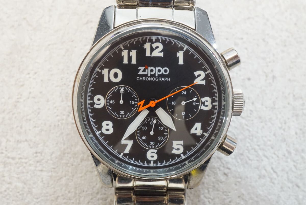 - F805 Zippo/ジッポー CHRONOGRAPH/クロノグラフ メンズ 腕時計 QUARTZ/クォーツ 黒文字盤 ブランド アクセサリー 不動品