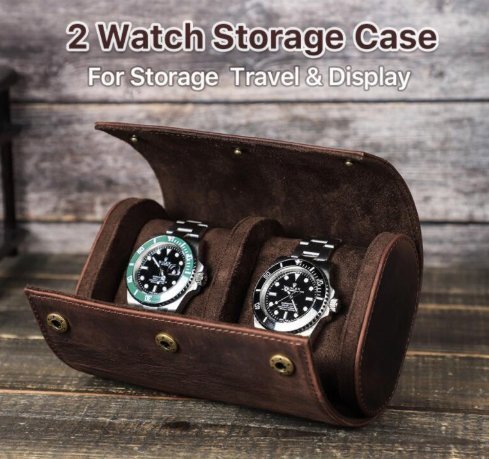 - 高級 本革 牛革腕時計ケース 2本収納 コンパクト携帯便利 メンズコレクションケース 父の日ギフトに最適