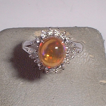 - 送料無料 pt900オパールにダイヤ取り巻きリング used質屋出品