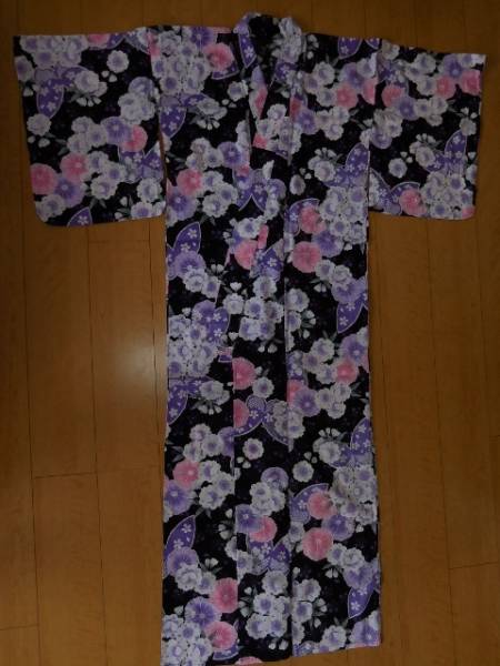 - 新品・浴衣・黒地・花柄・ピンク・桜・牡丹・紫・白・ラメ・女性