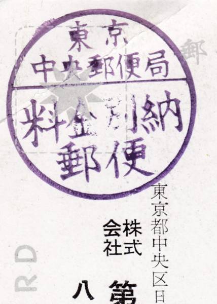 - t2267★料金別納郵便印/東京中央郵便局/葉書