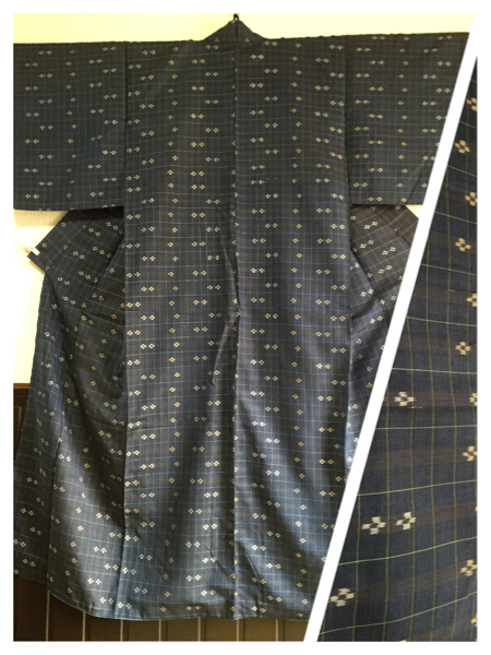 - 【紬】正絹 袷 身丈147cm 鉄紺色 軽いお着物