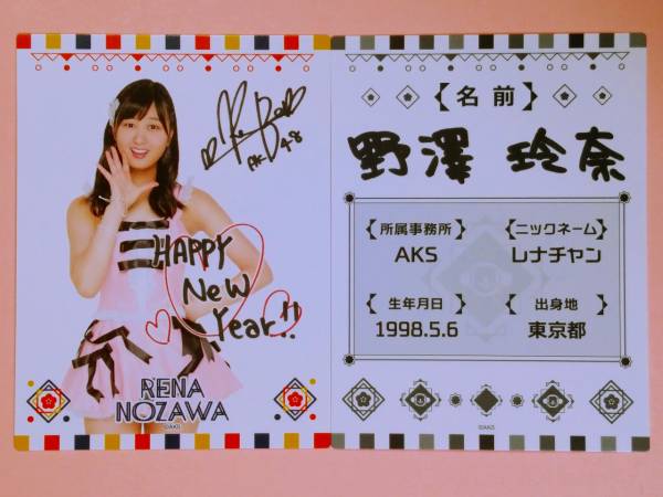 > AKB48 福袋2016 プロフィールカード 野澤玲奈 2枚セット